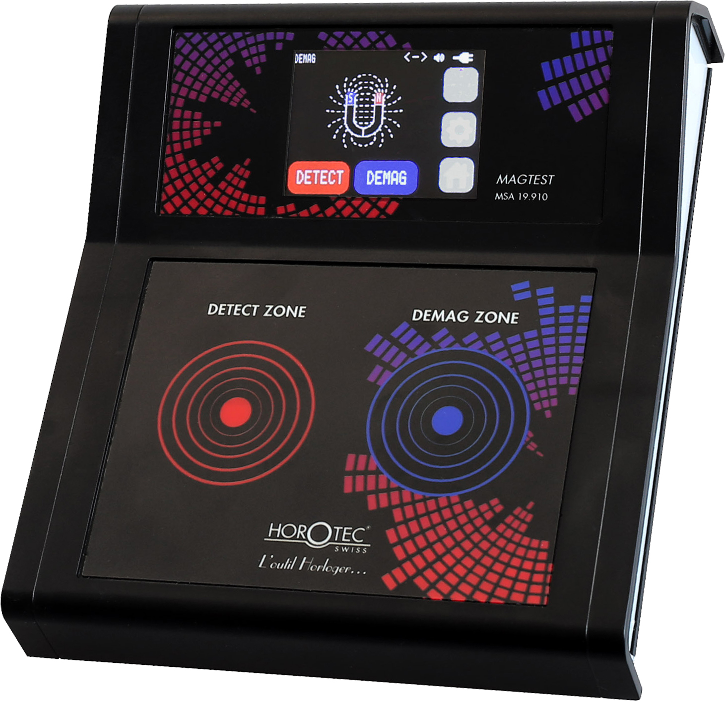 Электронное устройство для обнаружения магнетизма, размагничивания и контроля остаточной магнитной индукции часов, механизмов, инструментов и деталей часов.